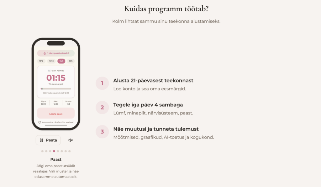 Õrn paast (14/10, 16/8) toetab ainevahetust ja hormonaalset tasakaalu. Pole dieet — vaid rütmi taastamine.