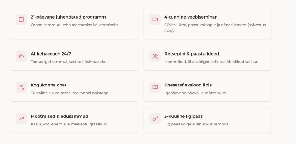 - Ligipääs äppi (3 kuud), kogukond, AI-abiline ja lisamaterjalid