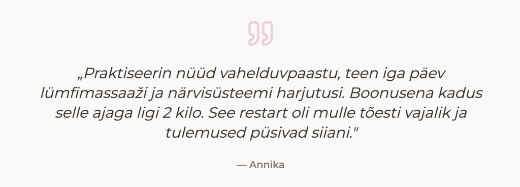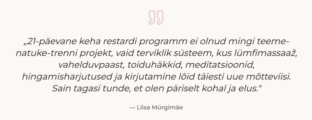 See ei ole dieet. See on teadlik elustiilimuutus. Ja selle elluviimiseks on loodud 21-päevane restart, mis aitab samm-sammult uue tasakaalu poole liikuda.”
