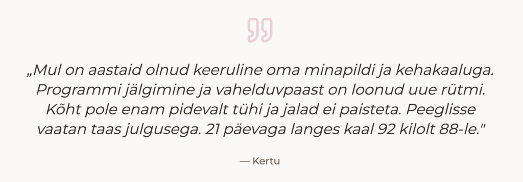 Viis aastat tagasi tundsin, et peab olema lihtsam ja tõhusam viis, kui pidev dieedikatsetamine ja “näljalaagrite” vaheldumine. Võtsin ette teekonna, et leida süsteem, mis päriselt toimiks. Uurisin, katsetasin, eksisin ja õppisin — kindla sihiga: taastada kergus kehas ja selgus mõtetes.